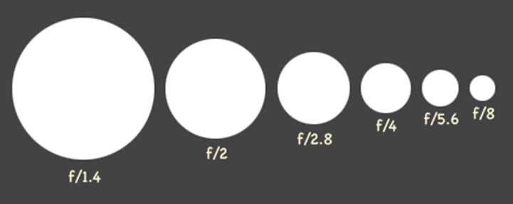 ومن الجدير بالذّكر أنّه كُلما ازداد الرّقم كُلّما صغر حجم فتحة العدسة، ففتحة عدسة f/8 أصغر من فتحة عدسة f/1.4.
